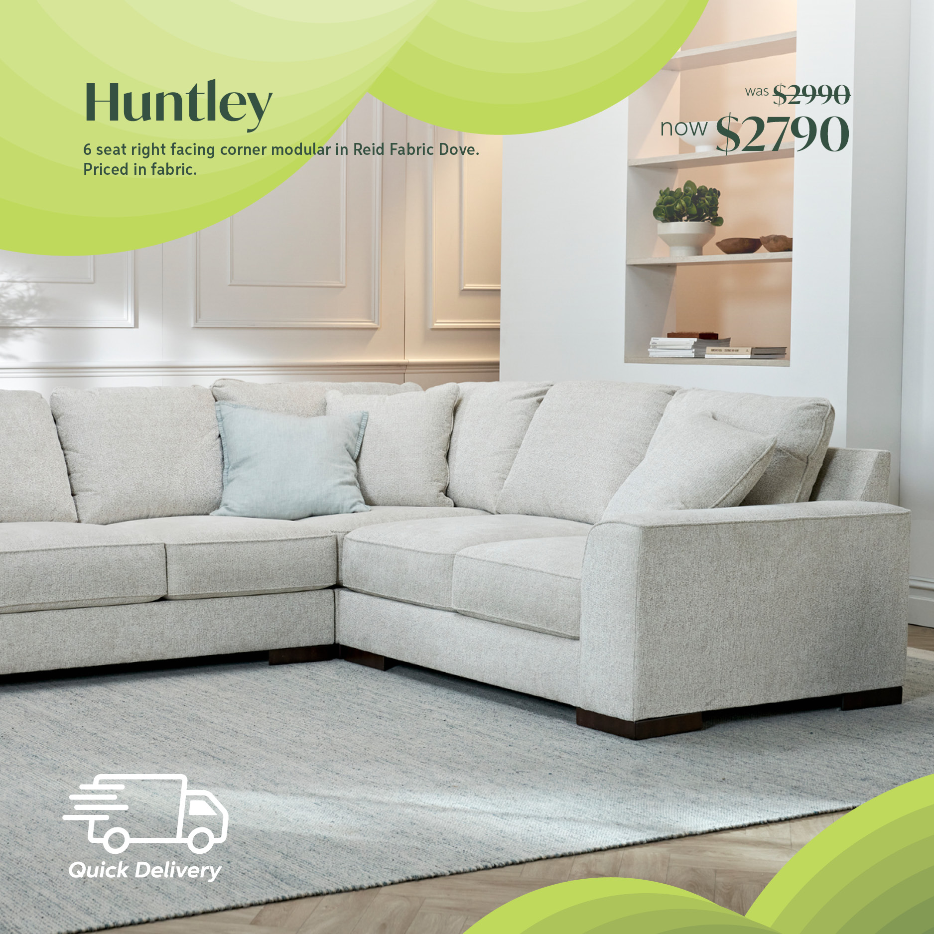 palm beach 6 seat corner modular with right facing ottoman