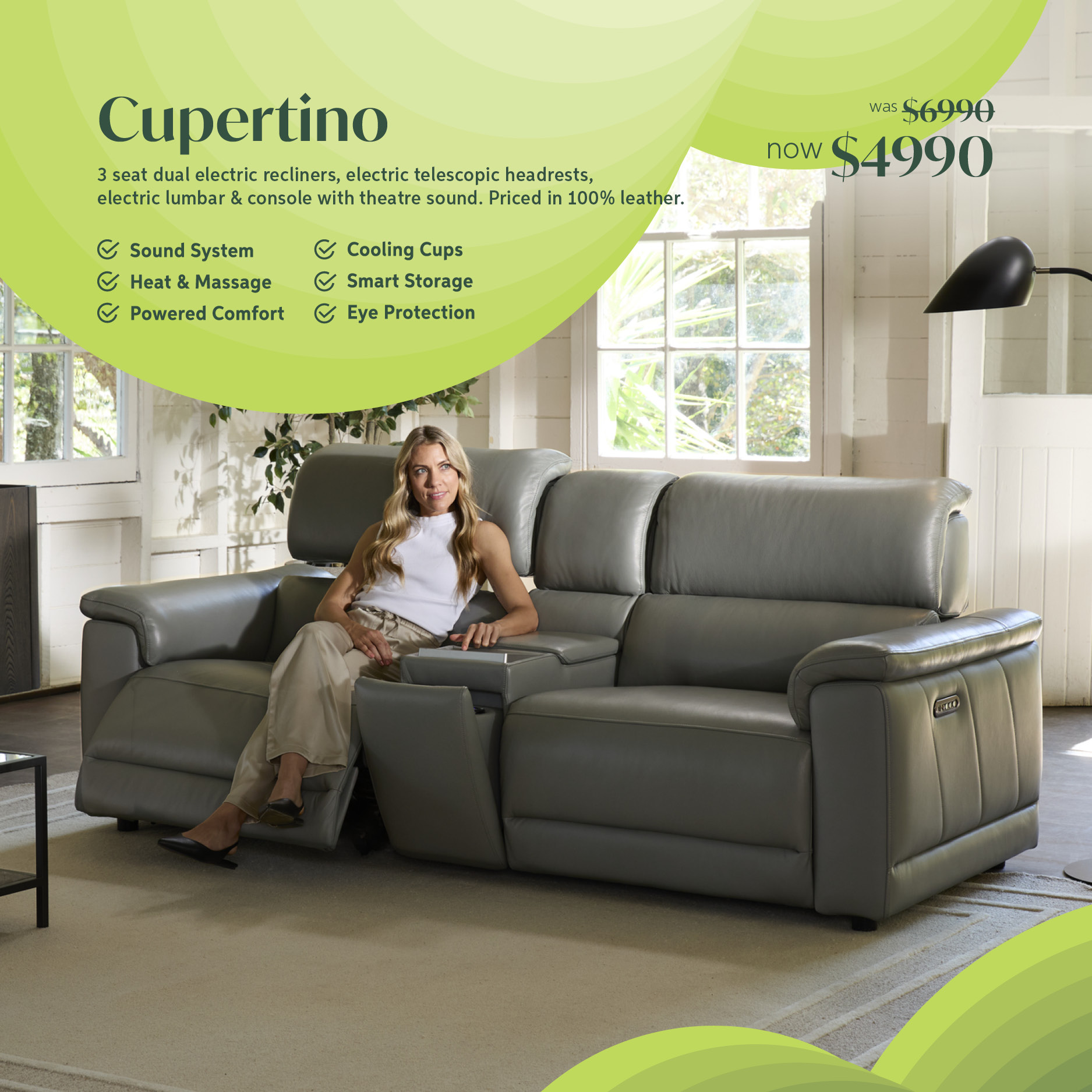 rhea 3 seat dual zero-gravity electric recliners with electric telescopic headrests