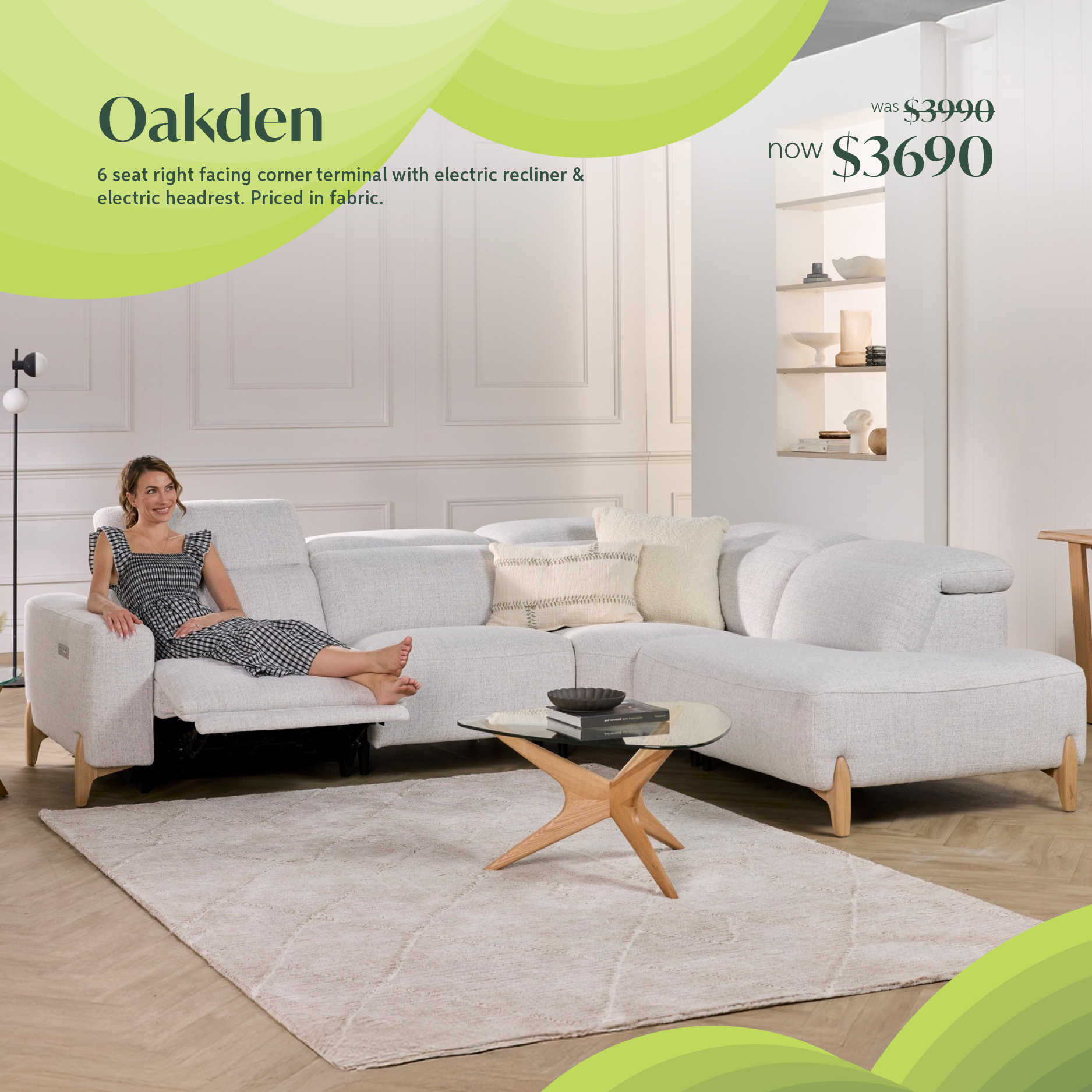 odin 2.5 seat electric recliner with electric headrest & right facing chaise